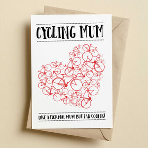 Does your Mum love bikes? If so then you have found the card for her! Cards are blank inside for your own message. Also don't forget she rides bikes so she is far cooler!