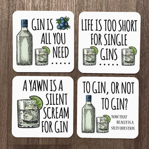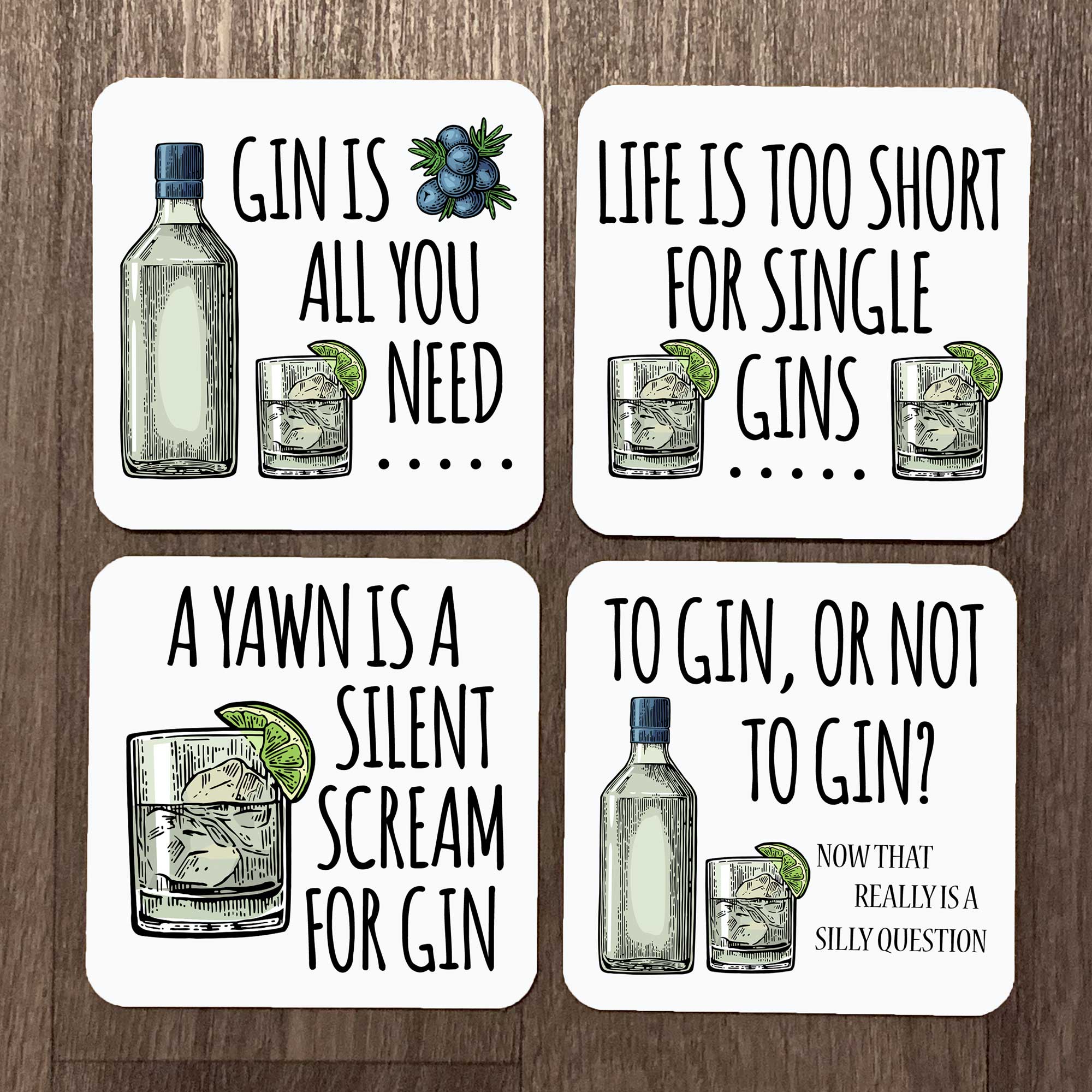 These coasters are a must have for any Ginaholic. The Gin coaster set contains 1 of each design.