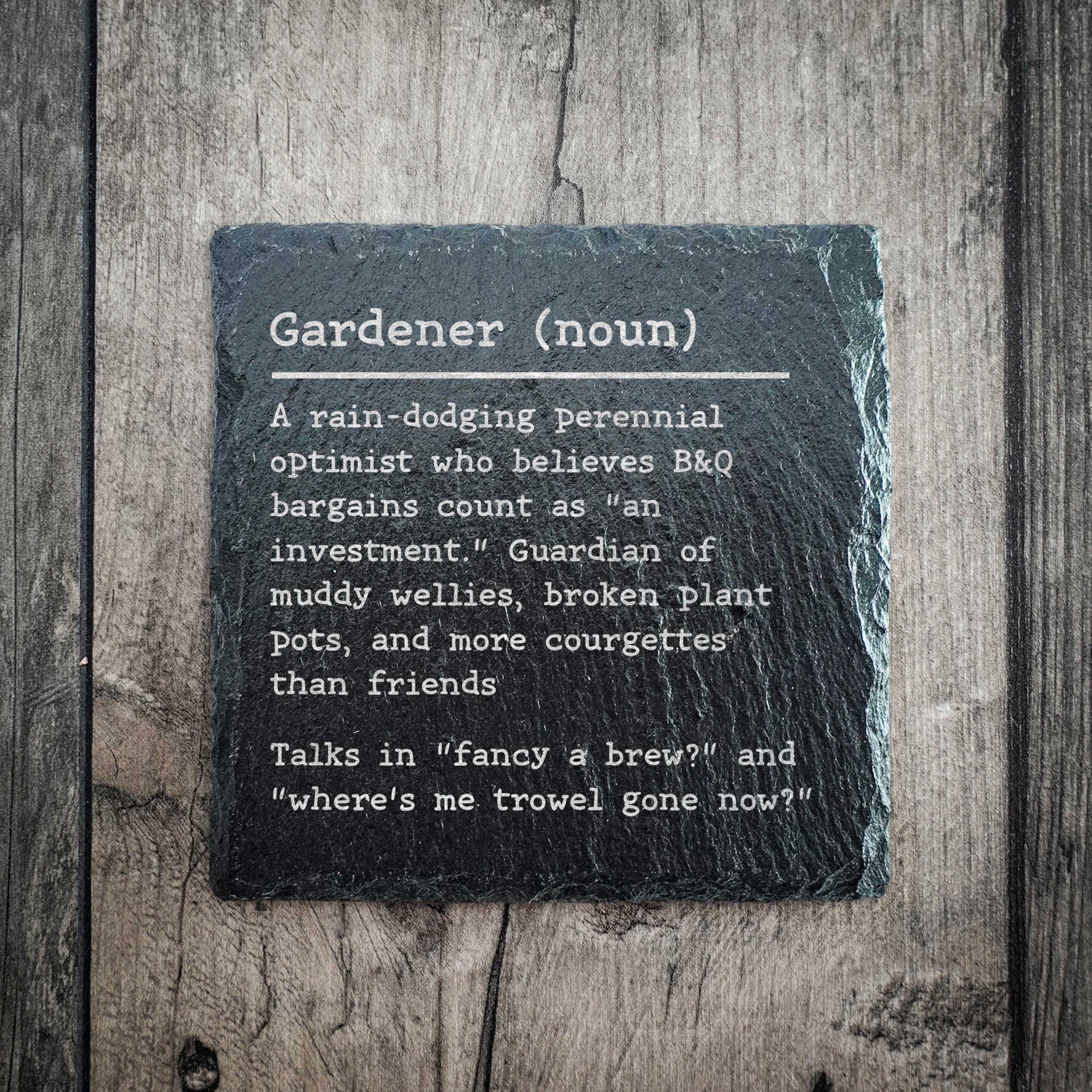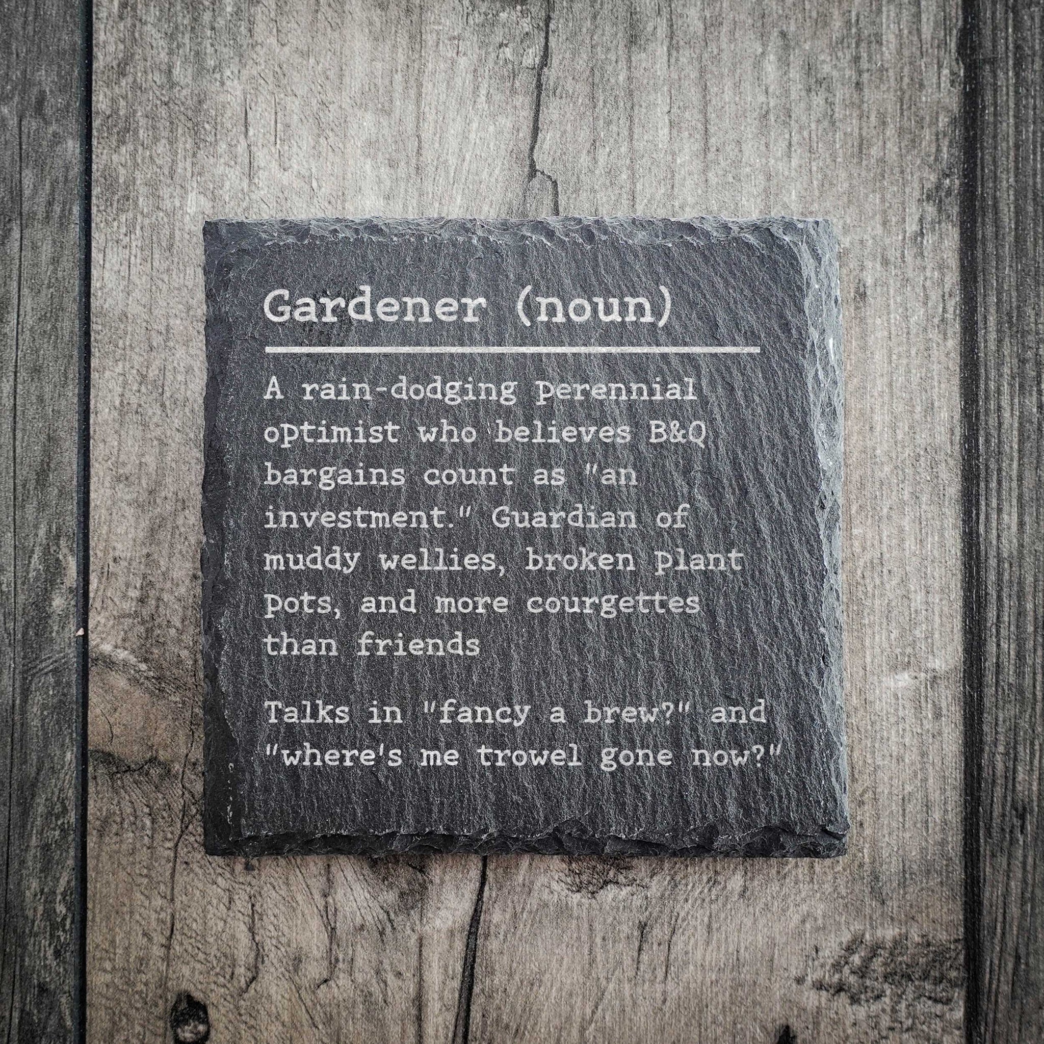 This coaster is a cheerful nod to gardening life, complete with a witty dictionary-style definition that’ll make any green-fingered gardener grin. A great gardening gift for anyone who loves digging, planting, and brewing a cuppa among the blooms.