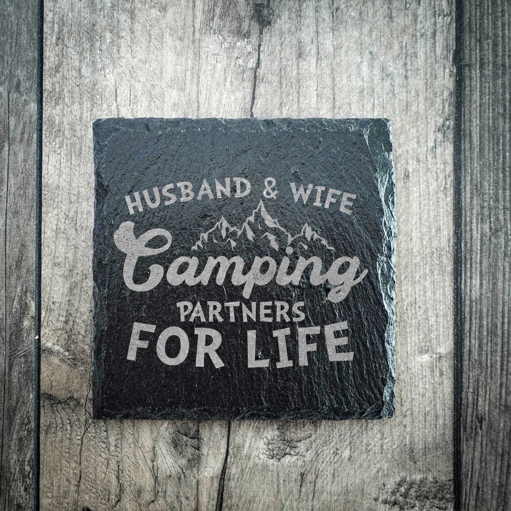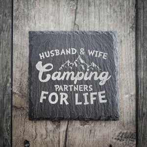 Husband and Wife Camping Partners For Life Riven Slate Coaster... Well until you fall out about putting the tent up! ;)
