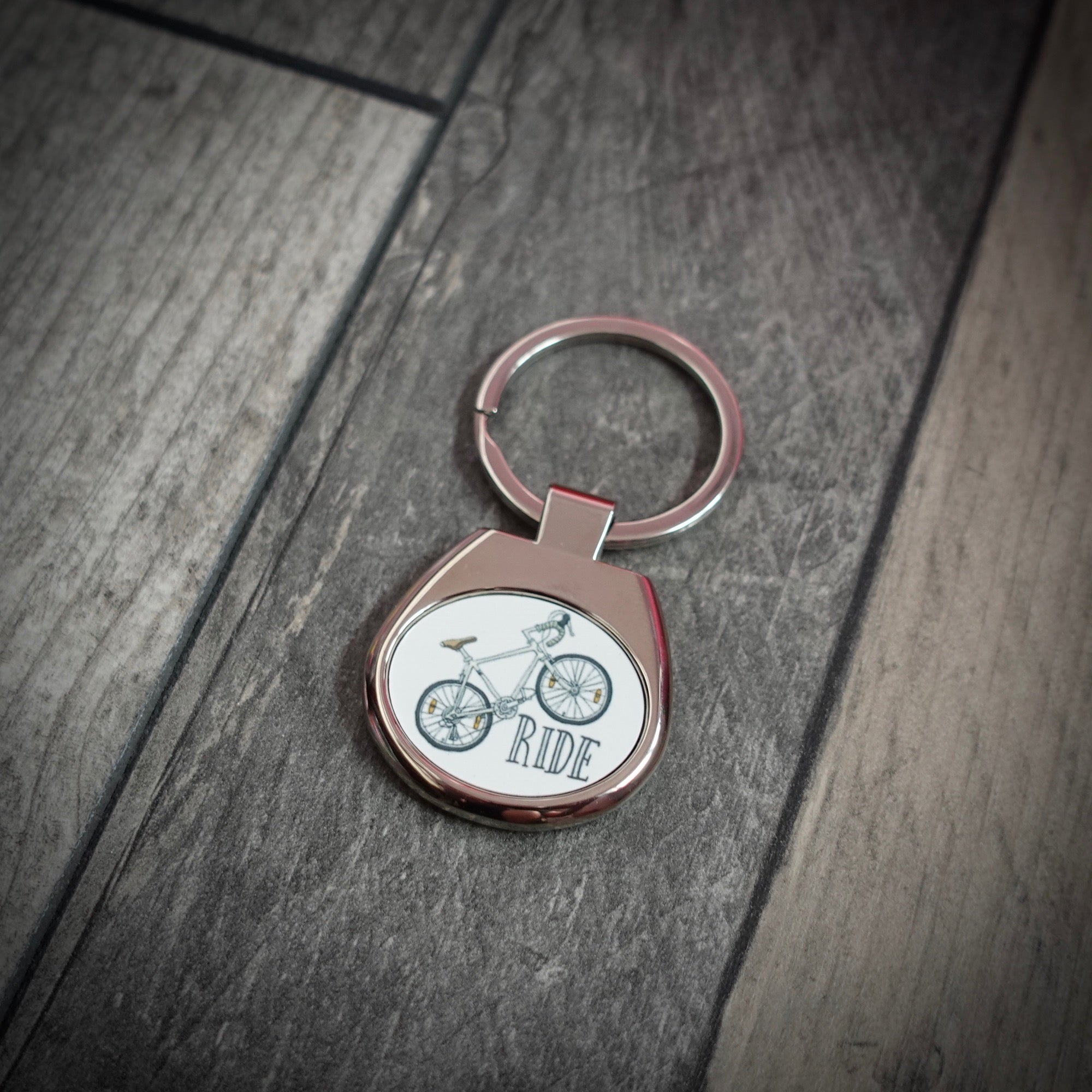 Ride Road Bike Key Ring | Round Metal Road Bike Keyring