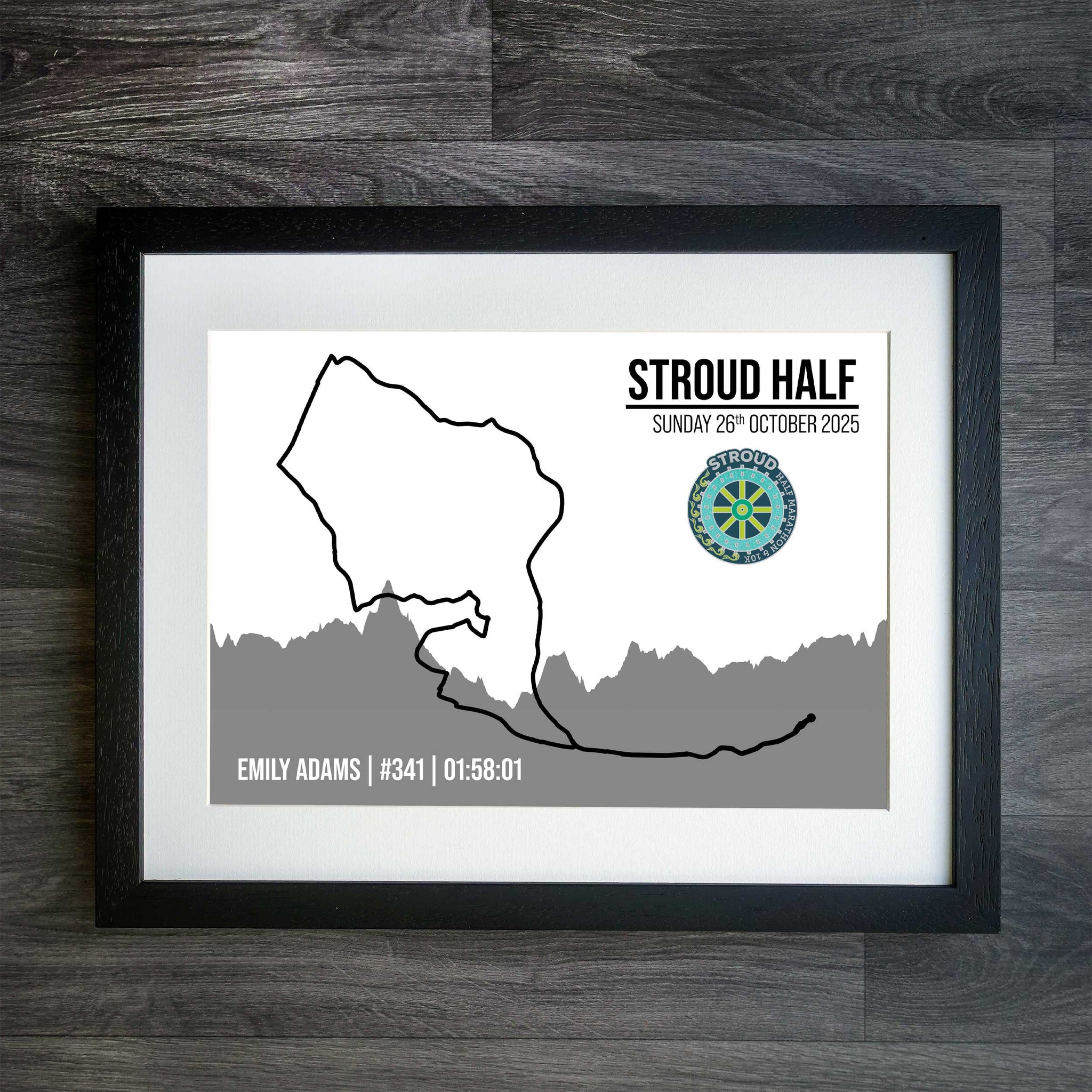 Mark your Stroud Half run with this official personalised route print. Designed to capture the spirit of race day, this print features the full 13.1 mile course and elevation profile. Add your name, finish time, and bib number to create a one-of-a-kind keepsake that celebrates your hard-earned medal moment. It’s the perfect post-race treat or gift for the runner in your life.