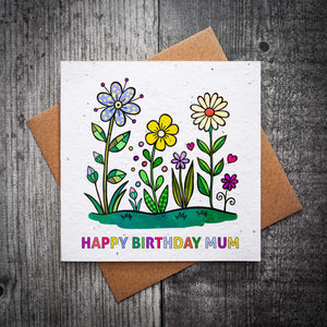 Colourful Doodle Flowers | Plantable Eco Friendly Seed Mum's Birthday Card