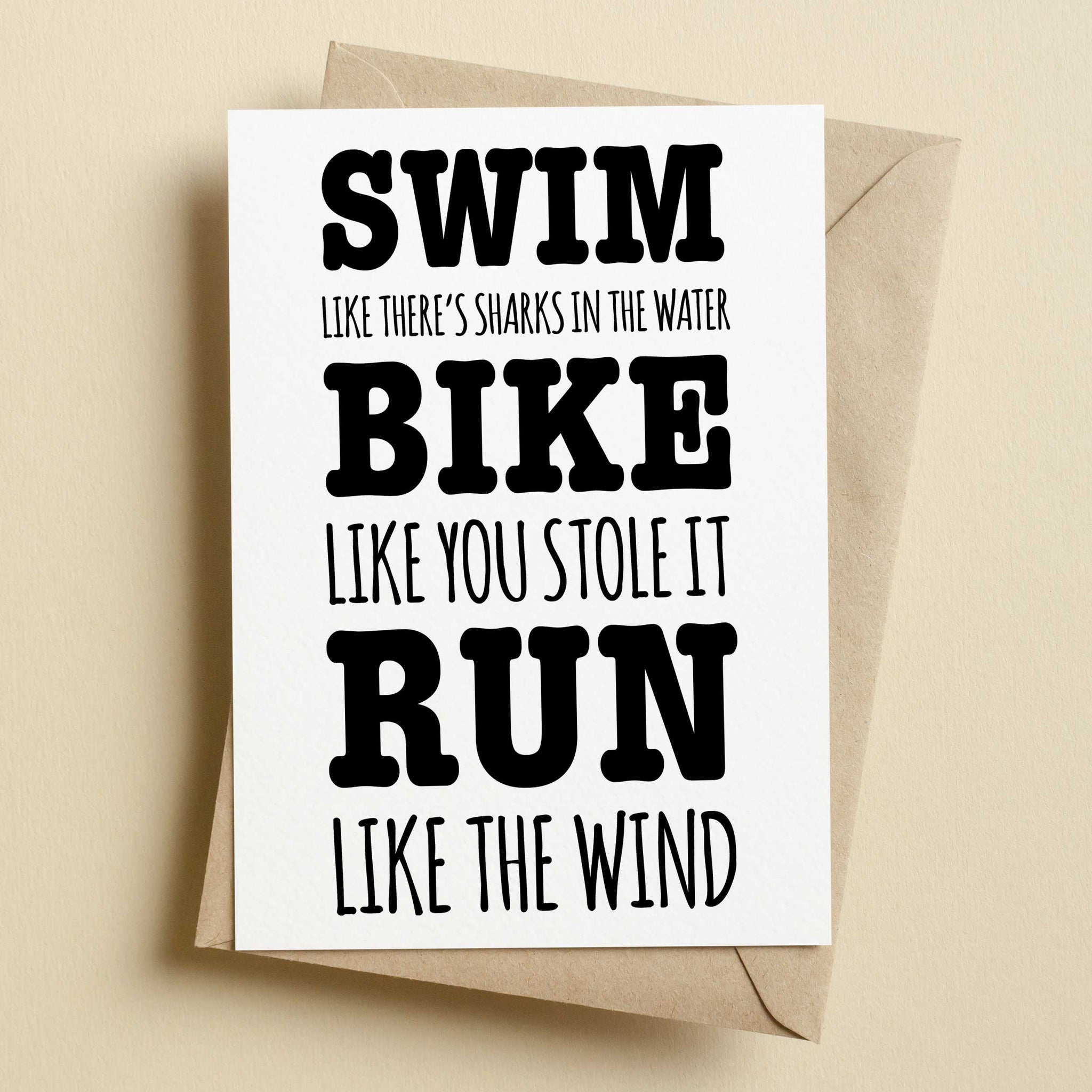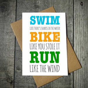 This card is the perfect good luck card for anyone who is going to take on a triathlon.