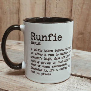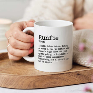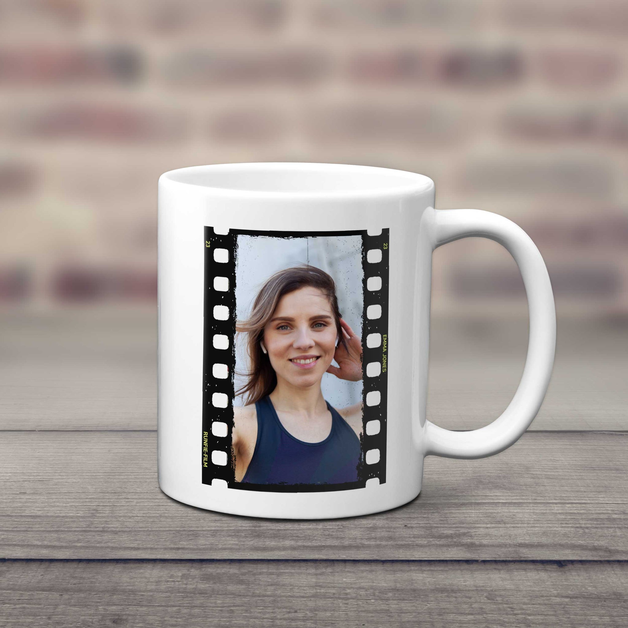 For runners who enjoy capturing the moment with a selfie, this 'Runfie' mug is perfect for you. The mug features a 'Runfie' dictionary definition on one side and a space for your own running selfie on the other. Personalise the film strip text with a name, event, or message for a one-of-a-kind gift.