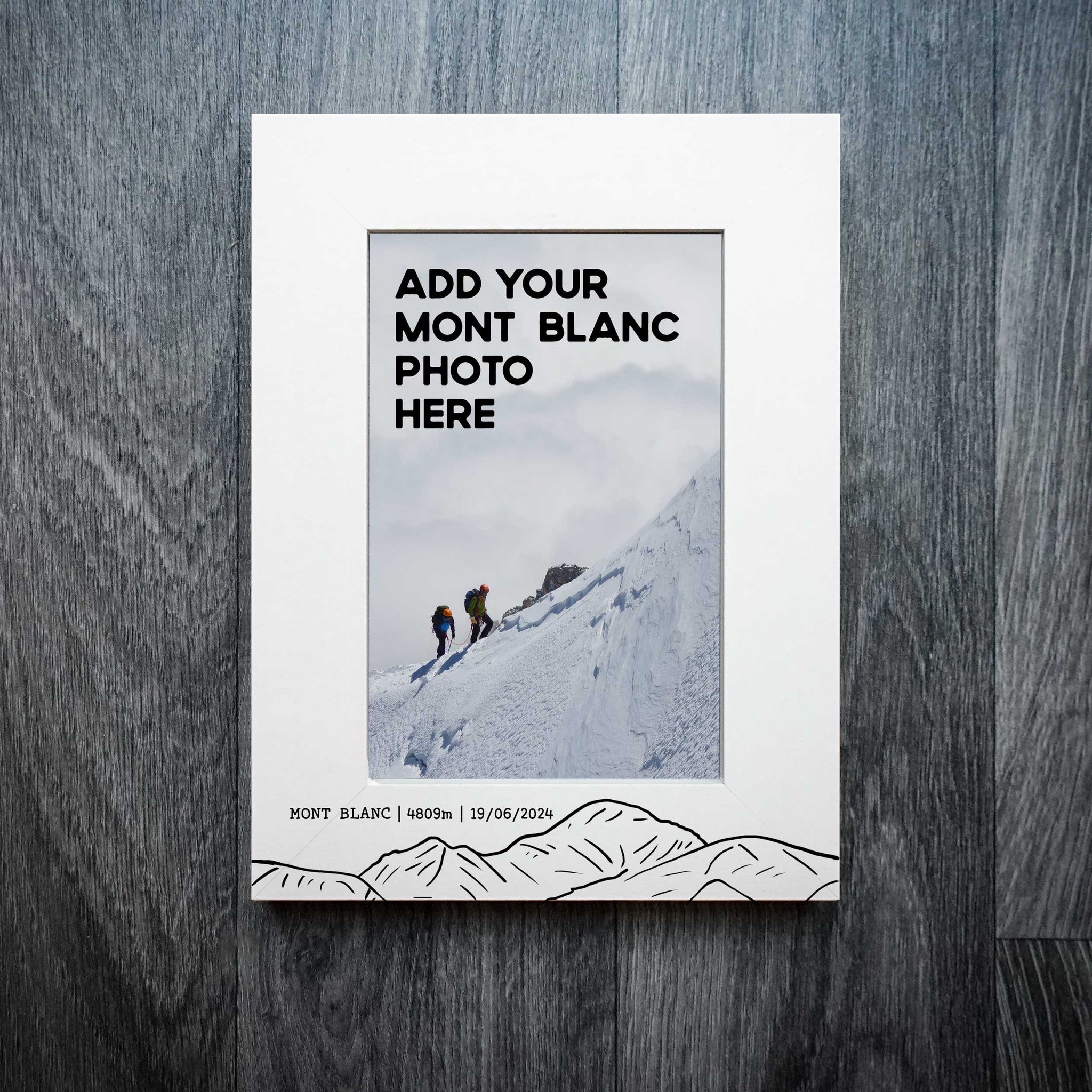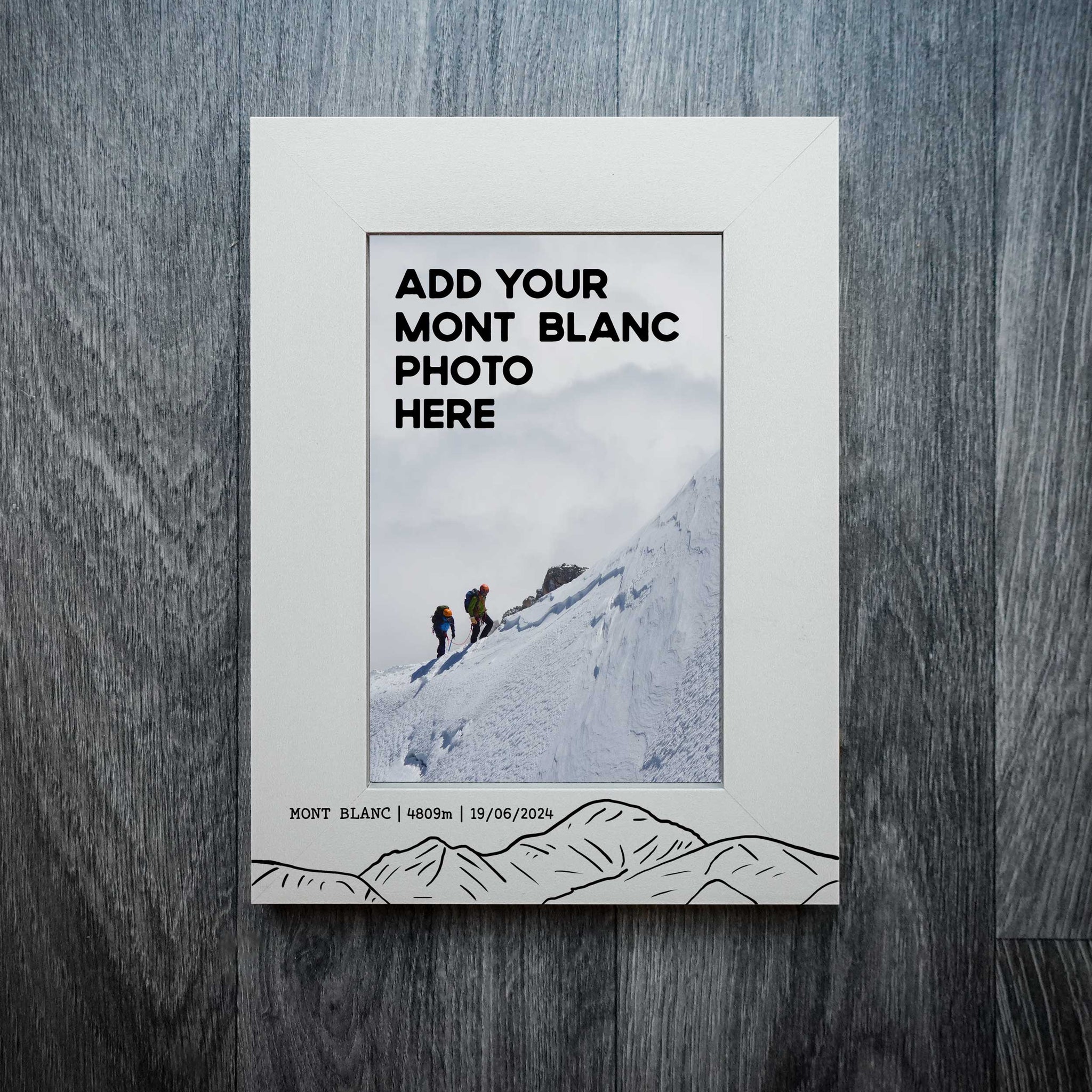 Mark your Mont Blanc adventure with this personalised laser engraved wooden photo frame, designed to showcase your favourite summit moment.