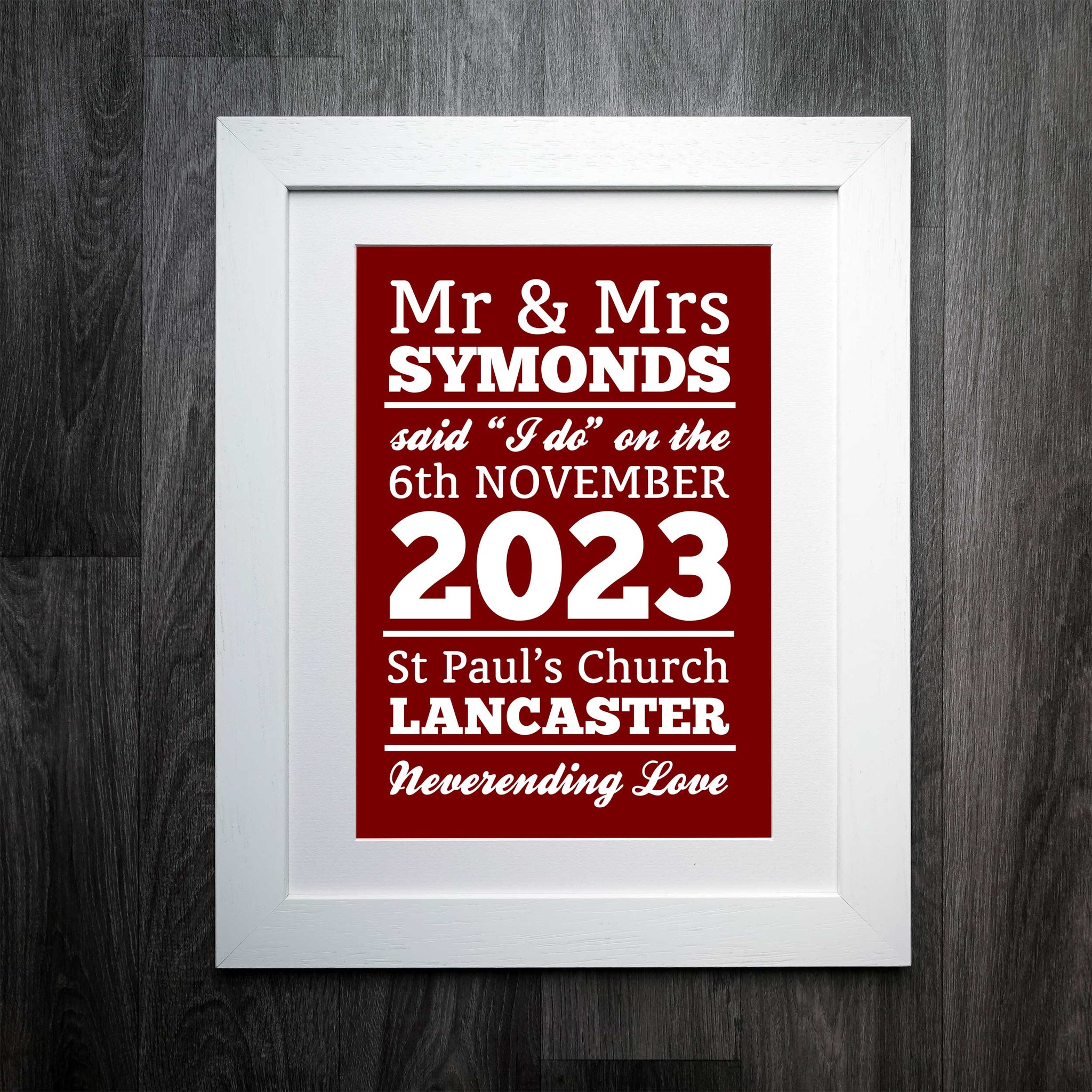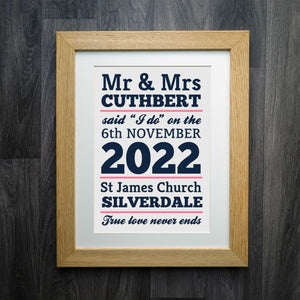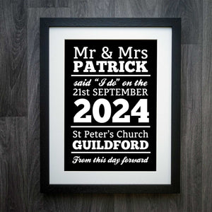 Choose our "I do" personalised wedding print to commemorate your precious moments and create a lasting memento of your love story.