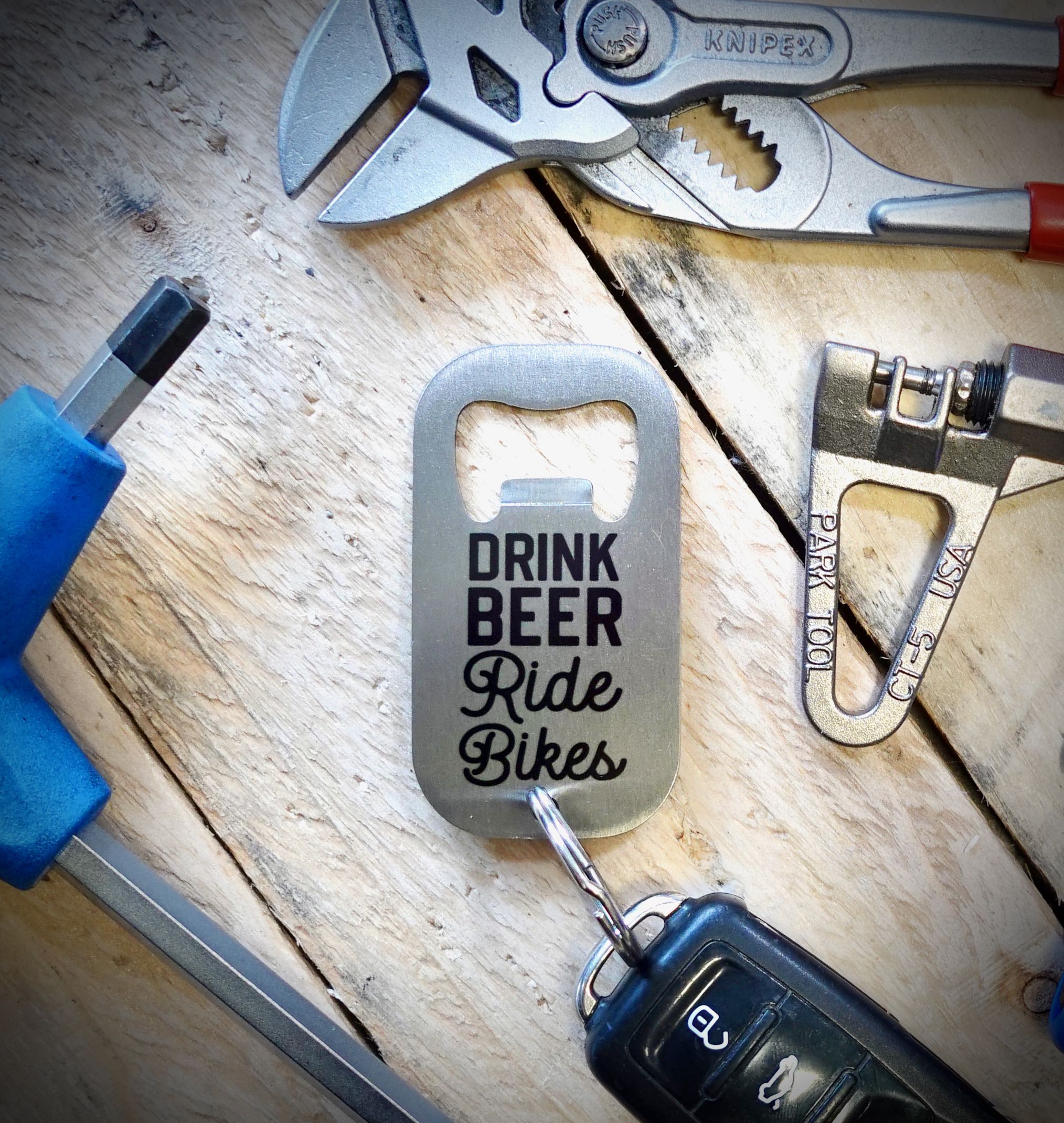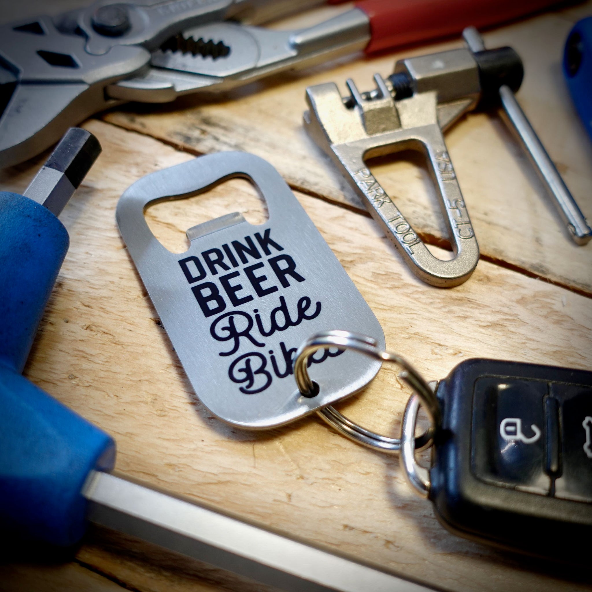 Drink Beer Ride Bikes Key Ring Bike Bottle Opener