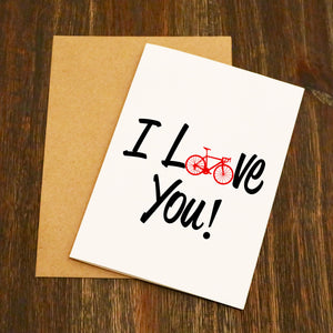 I Love You Cycling Valentine's card where we have replaced the 'o' in love with a beautifully designed road bike. Simple and effective!