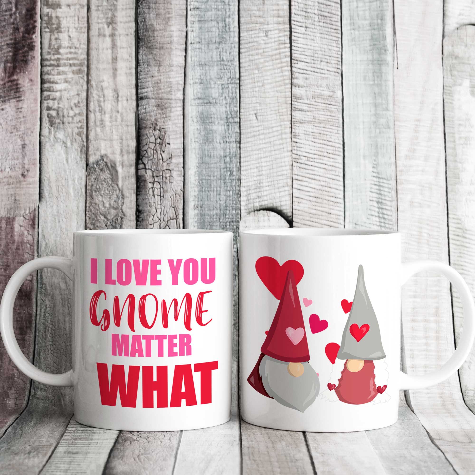 Printed on both sides. One side has standing gnomes the other side has the quote "I Love You No Matter What"