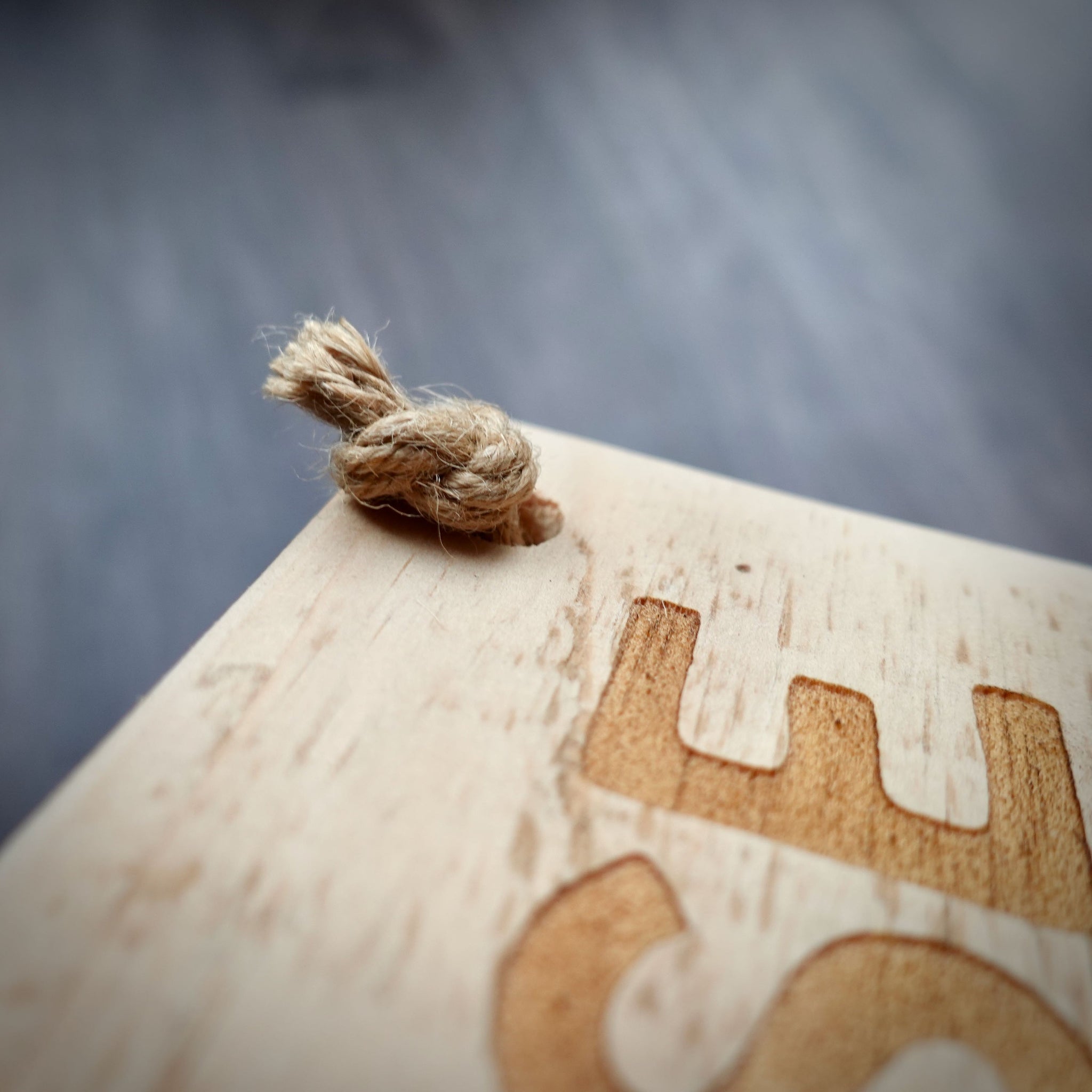 Handmade from reclaimed wood, each piece is stripped, sanded and laser etched. Hand tied with rustic jute rope so it's ready to hang.