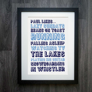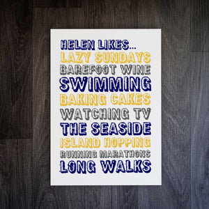 Letterpress Style Personalised Likes or Loves Print: A Unique and Fashionable Gift for Special Occasions