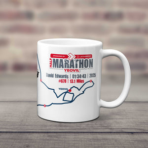 Official Yeovil Half Marathon 2025 Personalised Route Mug – Add Your Name, Bib Number & Finish Time