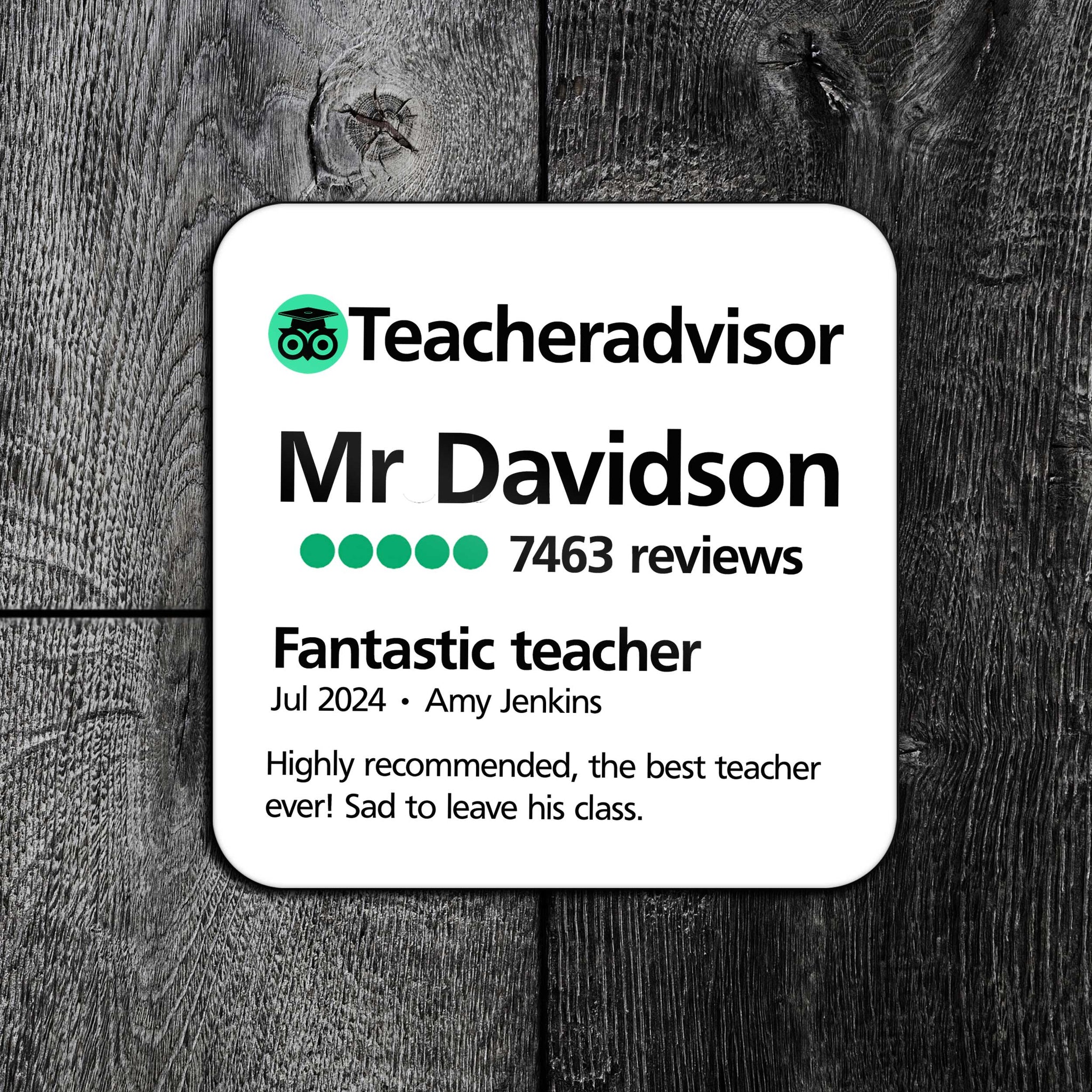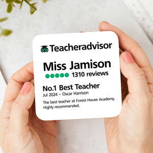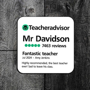 Our personalised "Teacher Advisor" coaster is designed to look like a TripAdvisor review, we have styled everything the same, from the dots to the format of the date... This makes a perfect end-of-term gift for that exceptional teacher.