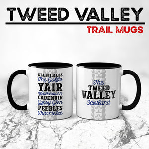 The Tweed Valley... Scotland's Premier Mountain Bike Area! The perfect souvenir from riding in this awesome location! This amazing MTB trail mug features trail names on one side and location on the other.