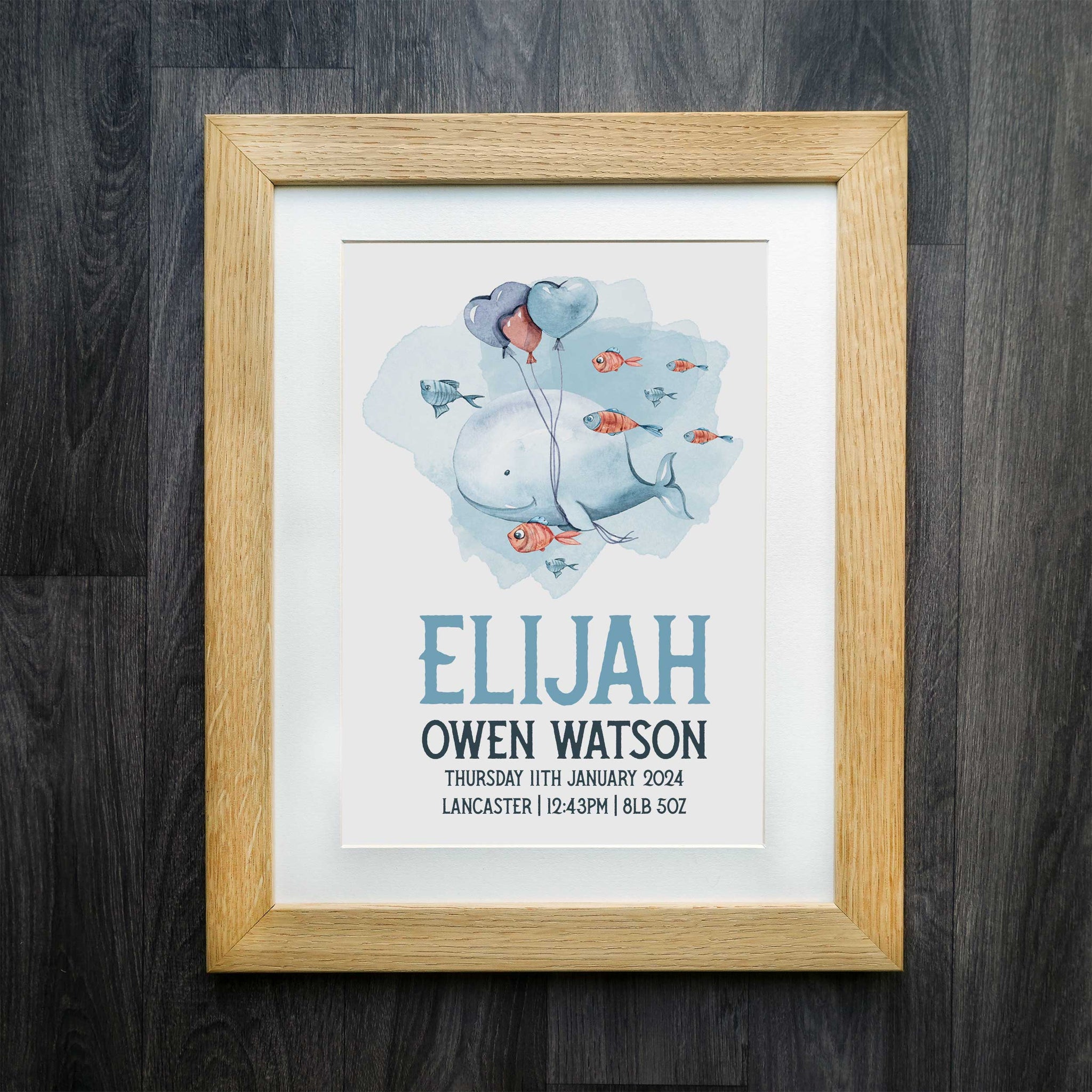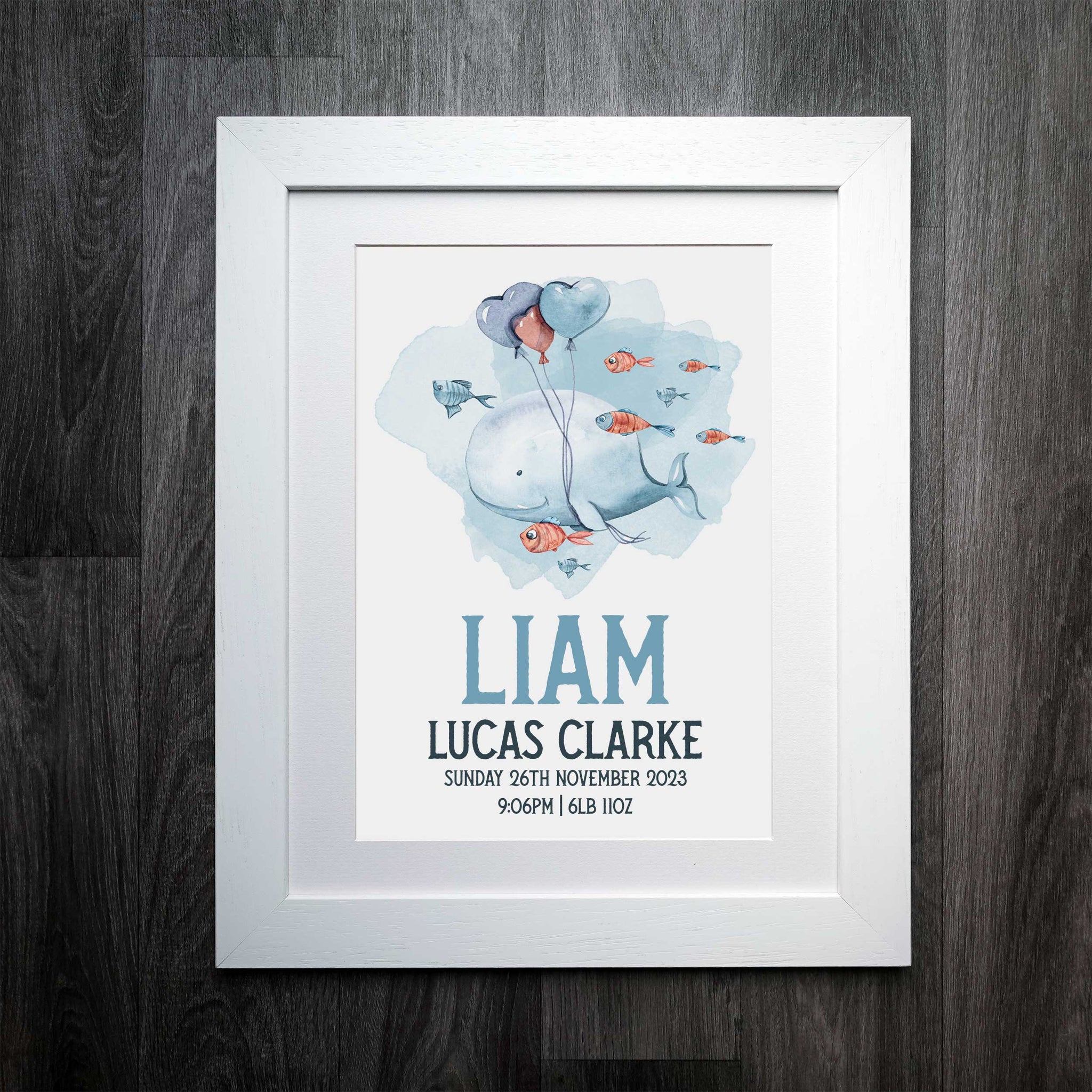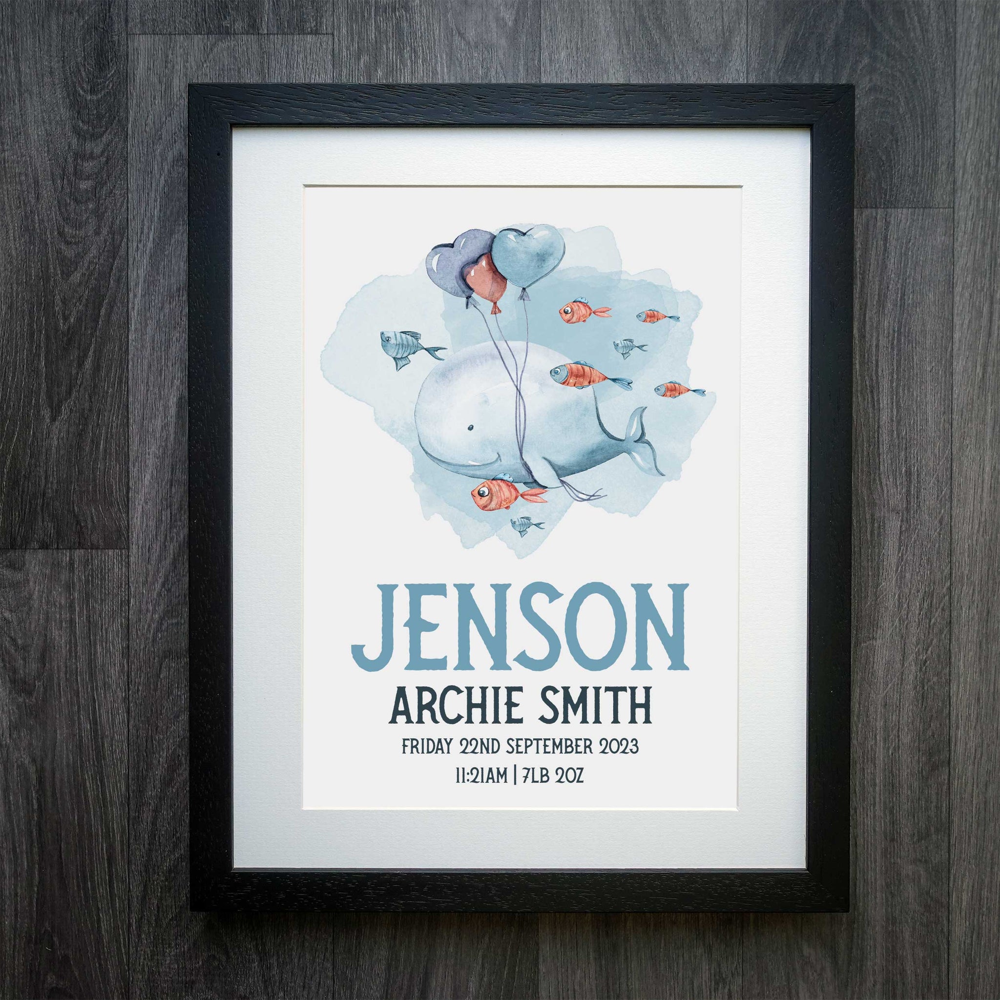Personalised Whale Love Nursery Print: Perfect Birth Details Gift