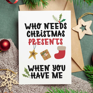 Who Needs Christmas Presents When You Have Me... Christmas Card.