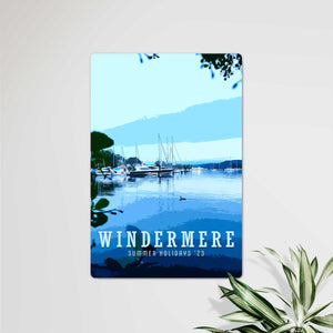 Sail away into the stunning vistas of Lake Windermere with our vintage-style travel sign. Featuring a tranquil lake view and charming boats, personalise this sign to make it a keepsake of your Lake District adventures.